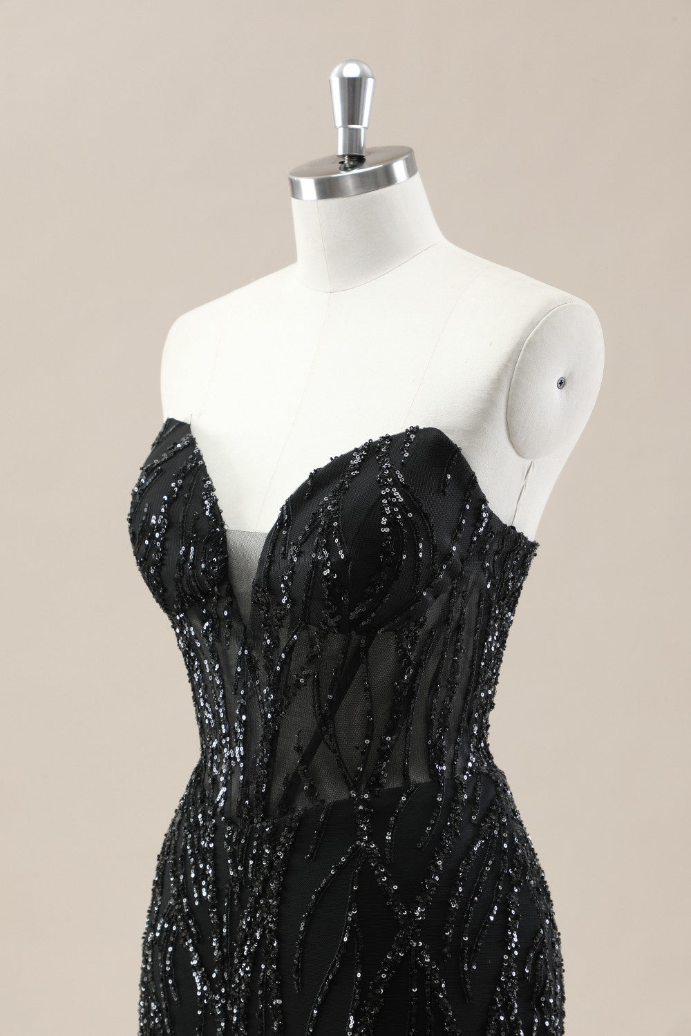 Command attention in this Black Beaded Strapless Mermaid Lace Up Prom Dress for Formal Evening. The strapless neckline elegantly showcases your shoulders, while the fitted mermaid silhouette hugs your curves and flares gracefully at the hem for a dramatic, sophisticated effect. Intricate beading adds luxurious sparkle and refined detail, elevating the gown’s glamour. The lace-up back ensures a customized fit while enhancing the dress’s elegant design. Perfect for prom nights, galas, or formal evening events, this dress exudes confidence, elegance, and timeless sophistication.
