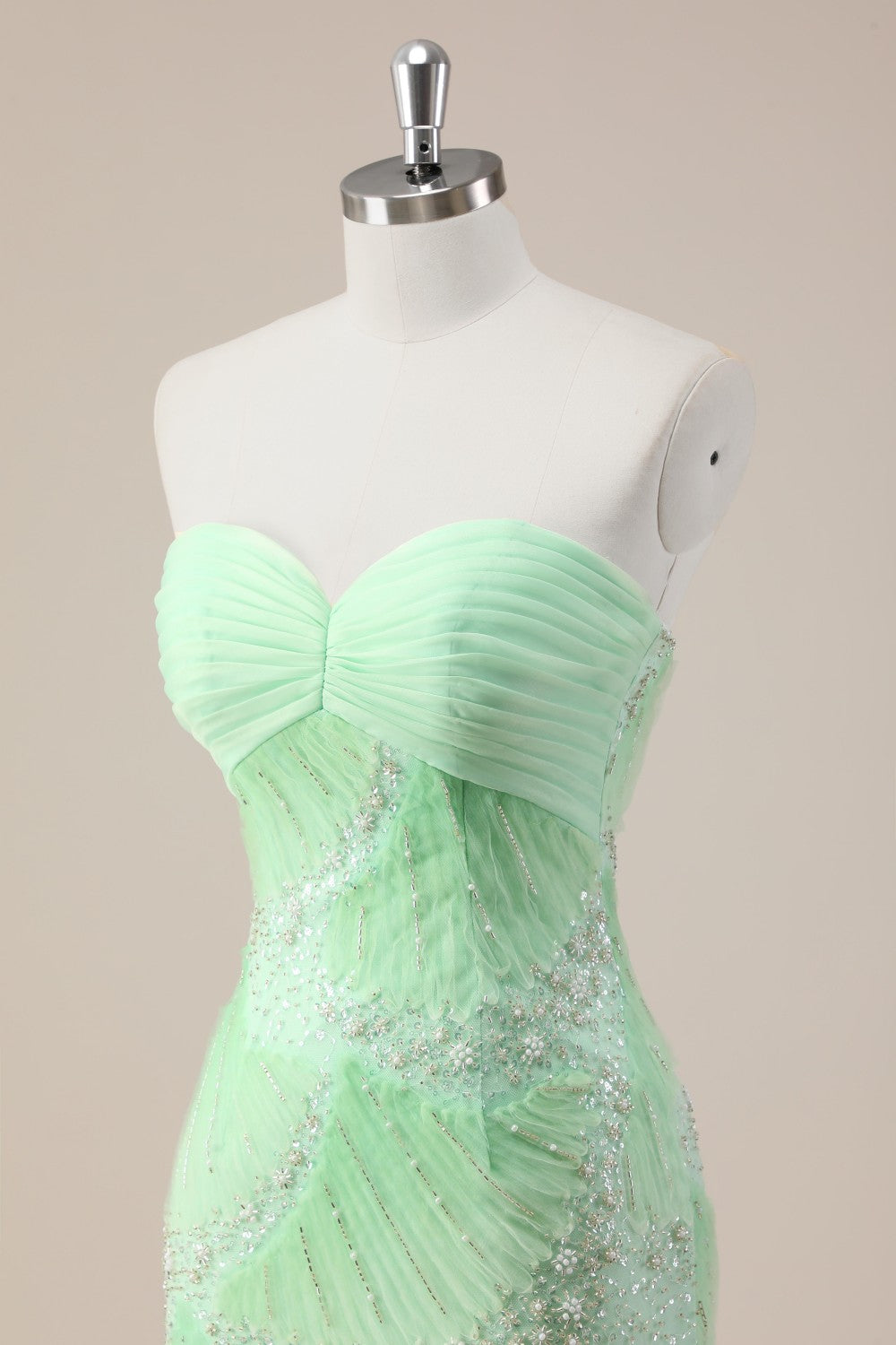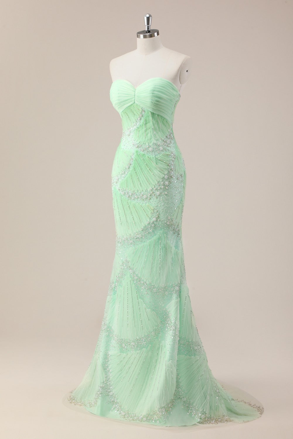 Exude sophistication in this Elegant Mint Sweetheart Neckline Ruched Mermaid Prom Dress with Beading. The romantic sweetheart neckline beautifully frames the décolletage, while delicate ruching along the bodice sculpts and flatters your figure. Intricate beading adds subtle sparkle and luxurious detail, elevating the gown’s elegance. The fitted mermaid silhouette hugs your curves and flares gracefully at the hem for dramatic movement. Finished in a soft mint hue, this dress is perfect for prom, formal events, and any special occasion where timeless beauty is essential.